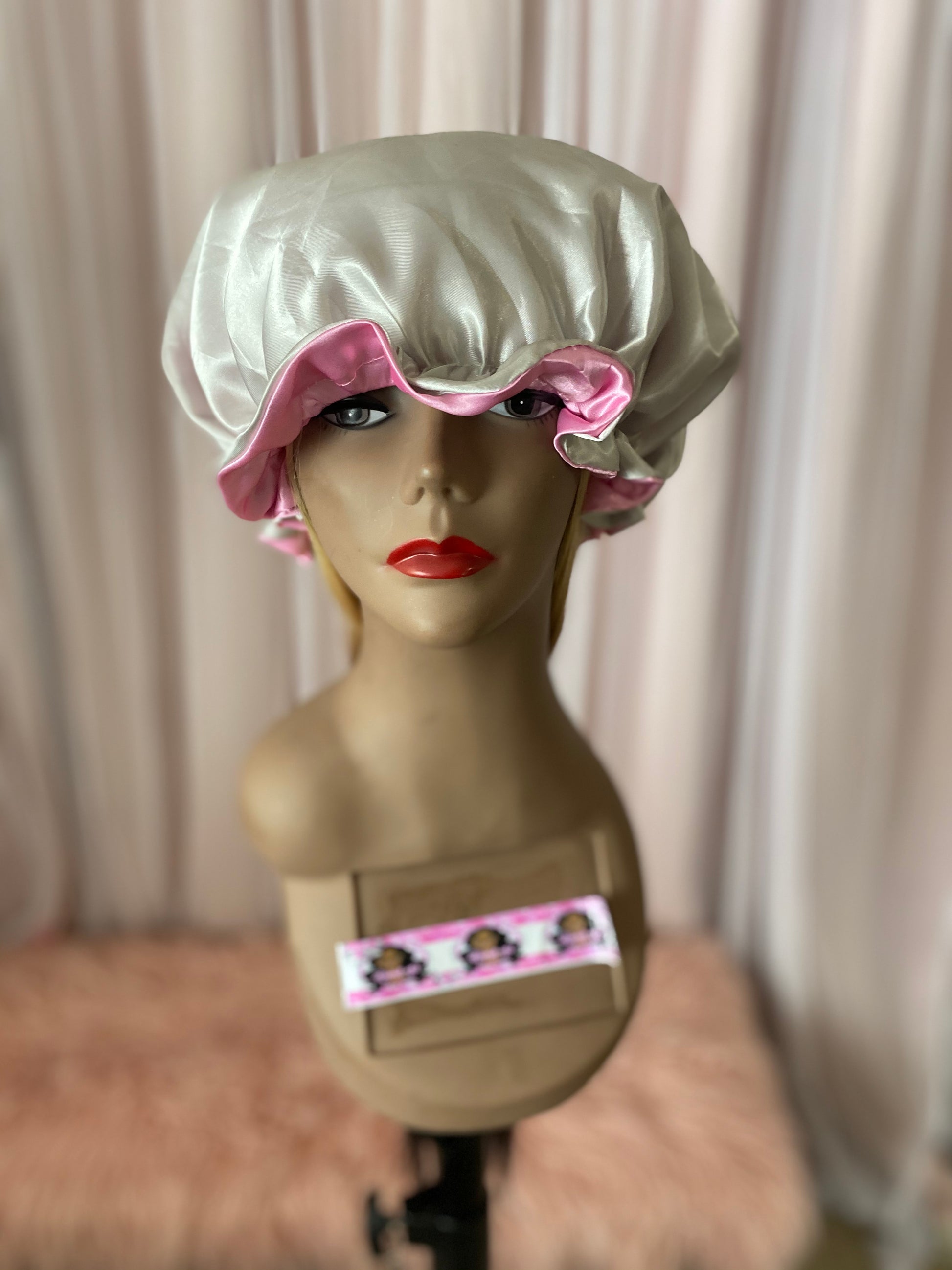 Go to sleep in style with our double layered satin bonnet! Keeps hair and curls in place in a soft satin material.